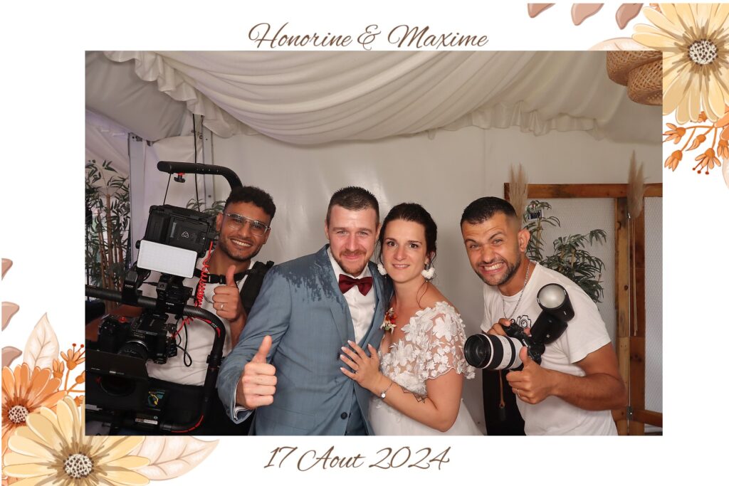 Pour clôturer cette journée pleine d’émotions, nous avons pris une dernière photo tous ensemble : les mariés, Jonathan Henri — le photographe avec qui j’ai eu le plaisir de collaborer et moi. Un moment simple, spontané, mais symbolique : celui où le stress retombe, où l’on sourit sincèrement, heureux d’avoir vécu (et capturé) quelque chose d’unique. Une belle complicité entre professionnels… et surtout un souvenir à trois qu’aucun de nous n’oubliera.